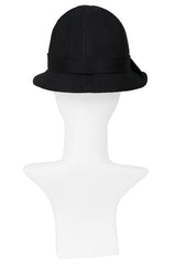 Resurrection is pleased to offer a vintage Galanos black wool fancy hat with detailed stitching and large buckle at the front.