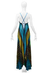 GAULTIER 2005 FUTURISTIC PLEATED HALTER GOWN WITH ACRYLIC COLLAR