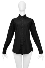 Resurrection Vintage is excited to offer a vintage Jean Paul Gaultier black cotton shirt featuring long sleeves, folding collar, back loop, and silver ball hardware for buttons.