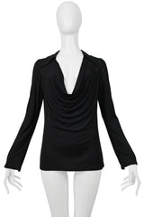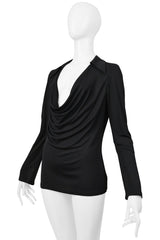 GUCCI BY TOM FORD BLACK JERSEY LOW CUT COWL NECK TOP 1997