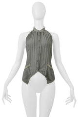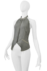 ISSEY MIYAKE PEARL GRAY PLEATED HALTER TOP WITH OPEN BACK SS 2000