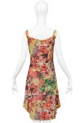 Resurrection Vintage is excited to offer a vintage multicolor Jean Paul Gaultier classic mesh dress featuring a floral pattern, portrait imagery, and small rosettes, shoulder bow and knee length.