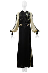 JEAN PAUL GAULTIER 30TH ANNIVERSARY BLACK AND CREAM SATIN ENSEMBLE W MESH STRIPES 2007