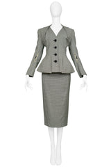 JOHN GALLIANO BLACK AND WHITE HOUNDSTOOTH SKIRT SUIT 1995