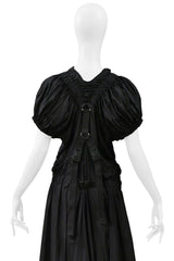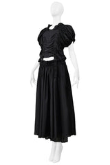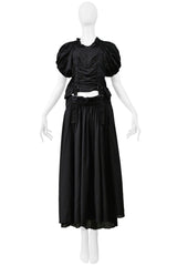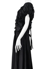 Resurrection Vintage is excited to present a vintage Junya Watanabe black cotton parachute dress from the SS 2003 collection, featuring gathered puff sleeves, a slight V neckline, midriff cutout, front and back adjustable straps and utility buckles, and an easy wrap skirt with a back closure.