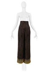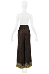 CHRISTIAN LACROIX BROWN FLORAL PANTS WITH GOLD BLUE & RED EMBROIDERY