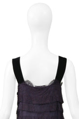 LANVIN BY ALBER ELBAZ BLUE LACE SLIP DRESS WITH VELVET STRAPS & SATIN BUTTONS 2006