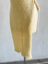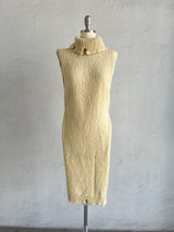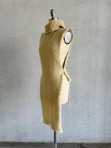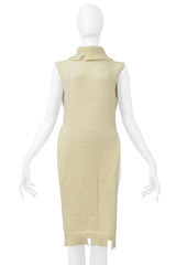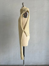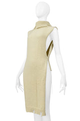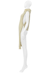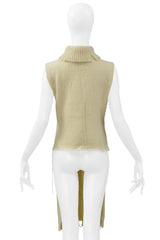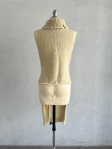 Resurrection Vintage is excited to offer a vintage Maison Martin Margiela off-white deconstructed or "destroyed" knit sweater featuring a folding high neck collar, a sleeveless body, intentional holes and runs, and a high-low hemline. Please view the studio photos and natural light photos below.