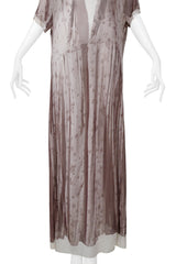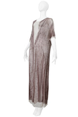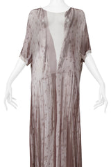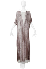 Resurrection Vintage is excited to offer a vintage Maison Martin Margiela iconic tromp l'oeil dress featuring a sepia-toned photo print of a vintage dress printed on a simple mesh caftan-style maxi dress.