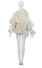 Resurrection Vintage is excited to offer a vintage Maison Martin Margiela artisanal bridal jacket featuring white tulle and cream satin gathered together to form a formal jacket.
