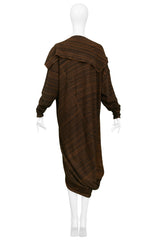 Resurrection Vintage is excited to offer a vintage 1970's Issey Miyake dark and medium brown knit toga dress with an attached over-piece, long sleeves, and 3/4 length body.