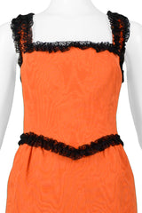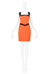 MOSCHINO COUTURE ORANGE QUILTED FAILLE WITH BLACK LACE TRIM DRESS