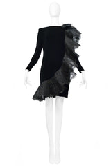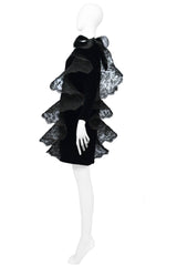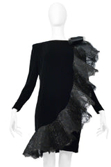 PIERRE CARDIN BLACK VELVET & LACE RUFFLE DRESS 1991