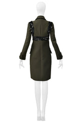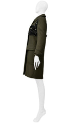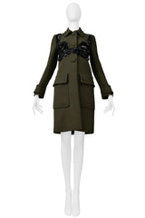 PRADA ARMY GREEN TAILORED COAT WITH FANCY BLACK BRA BEADING DETAIL 2014