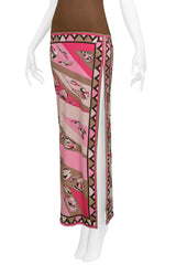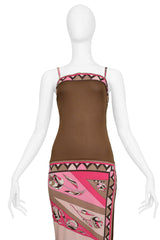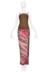 PUCCI PINK & BROWN SILK JERSEY GOWN ABSTRACT PRINT