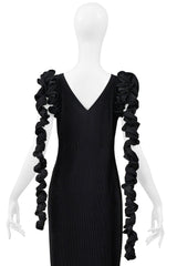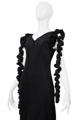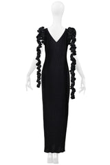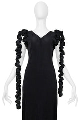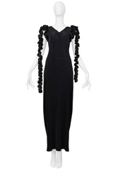 ISSEY MIYAKE BLACK PLEATED GOWN WITH SPIRAL TENDRILS 2000-2001