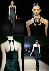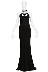 SOPHIA KOKOSALAKI BLACK ARCHITECTURAL EVENING GOWN WITH INTRICATE BODICE 2008