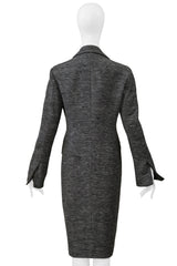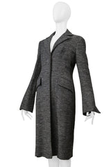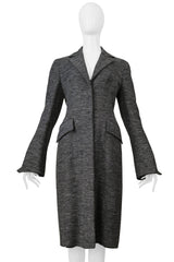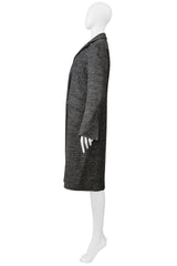 Resurrection Vintage is thrilled to offer a vintage Alberta Ferretti grey melange coat, featuring  a single breasted front closure, flap pockets, notched collar, and below the knee length.