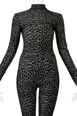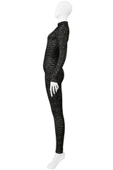 ALAIA BLACK AND WHITE ABSTRACT PRINT CHENILLE CATSUIT