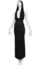 ALAIA BLACK HOODED EVENING GOWN 1984
