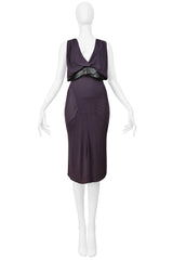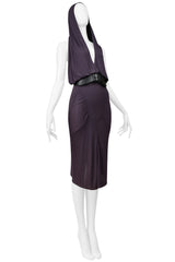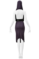 Resurrection Vintage is excited to offer a vintage Azzedine Alaia purple jersey dress featuring a halter front, exposed back, and fitted skirt with lingerie stitching detail, flounce at skirt, snaps at center back. The belt is sold separately.