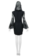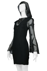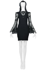 THIERRY MUGLER BLACK MYSTICAL SYMBOLS DRESS WITH HOOD