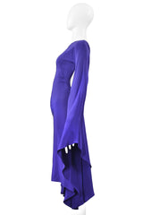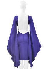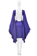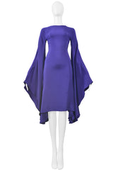 Resurrection Vintage is excited to offer an iconic Tom Ford circle dress featuring dramatic fluted sleeves that connect to the body to form a circular design, a fitted body, a sexy exposed back, and knee length.