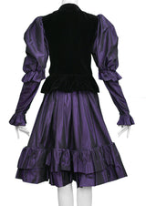 YVES SAINT LAURENT YSL BLACK VELVET & PURPLE TAFFETA ENSEMBLE 1982