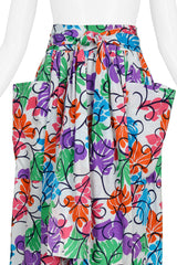 YVES SAINT LAURENT YSL MULTICOLOR FLORAL PRINT COTTON SKIRT