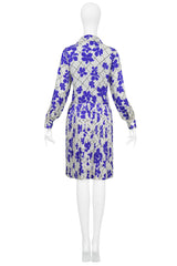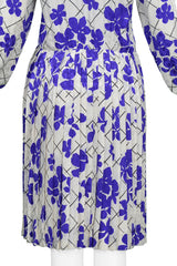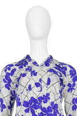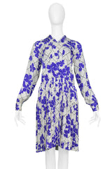 YVES SAINT LAURENT YSL WHITE & PURPLE FLORAL SILK DAY DRESS