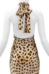 ROBERTO CAVALLI 2007 CHEETAH HALTER GOWN WITH GOLD HARDWARE