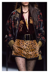 SAINT LAURENT PARIS LEOPARD PRINT PONY HAIR SHORTS WITH SUEDE TRIM 2019