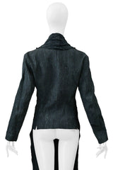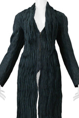 ISSEY MIYAKE SERPENT GREEN PLEATED JACKET WITH SIDE ZIPPERS AND LONG FRONT 2002-2003