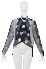 Y'S BY YOHJI YAMAMOTO BLACK AND WHITE POLKA DOT WRAP TOP WITH TIES 2001