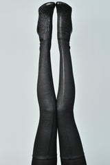 CHANEL BLACK RIBBED LEATHER THIGH HIGH SOCK BOOTS