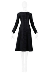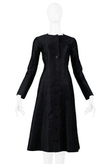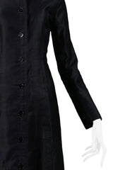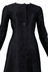 YVES SAINT LAURENT YSL BLACK SATEEN BUTTON FRONT COAT