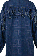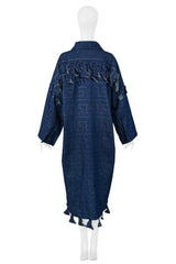Resurrection Vintage is excited to offer an iconic vintage Vintage Westwood McLaren Worlds End denim tunic featuring Greco rubber embossment throughout, iconic grey penis buttons at wrists, cut out detailing at the hem and front and back yoke. From the Clint Eastwood AW 1984-85 Collection. Original tags attached.