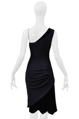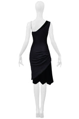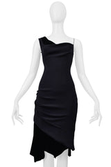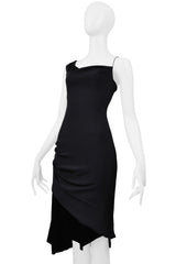 CHRISTIAN LACROIX BLACK ASYMMETRICAL STRAP DRESS WITH VELVET INSETS