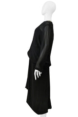 Resurrection Vintage is excited to offer a vintage Comme des Garçons black sheer dress with draping and interior silver chains from the Fall 2000 collection, featuring a detachable slip lining, long sleeves, interior chains that can be worn in various ways, a visible back zipper, and midi length.