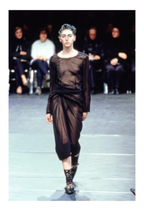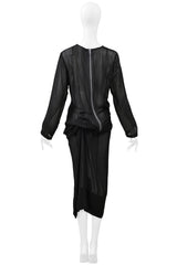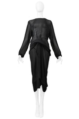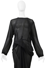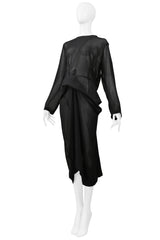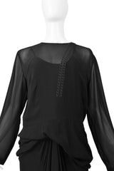COMME DES GARCONS BLACK SHEER DRESS WITH DRAPING & INTERIOR SILVER CHAINS AW 2000