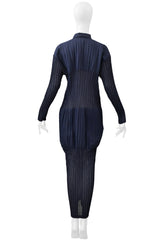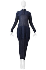 ISSEY MIYAKE INDIGO BLUE "VEILED TUBES" PLEATED DRESS 1998