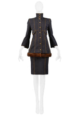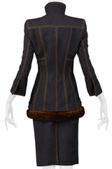 GIANFRANCO FERRE BLACK DENIM & FUR ENSEMBLE
