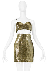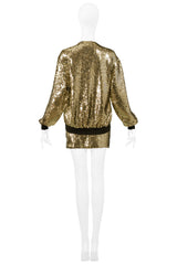 MOSCHINO GOLD SEQUIN BOMBER JACKET, BRA & SKIRT 1989