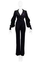 UNGARO BLACK SATIN TRIM SUIT JACKET & TROUSERS