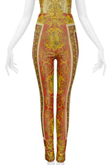 VERSACE 1992 RED & GOLD METALLIC SPANDEX BAROQUE ENSEMBLE