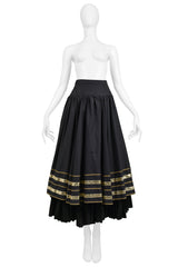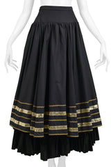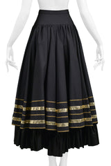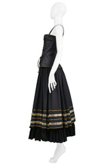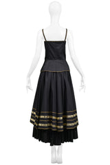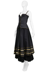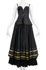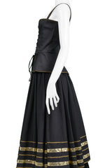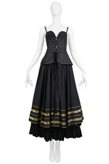 YVES SAINT LAURENT YSL BLACK & GOLD CORSET TOP & FANCY PEASANT SKIRT ENSEMBLE 1970S