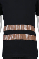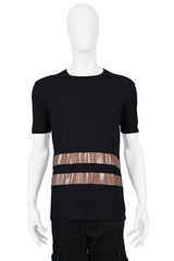 HELMUT LANG BLACK T SHIRT WITH BROWN STRIPES 1996