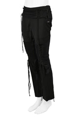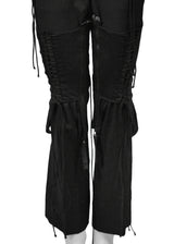 Resurrection Vintage is excited to offer a vintage dark navy Helmut Lang aviator corset chaps. Shown here over Helmut Lang black pants. The chaps feature corset lace-up panels at the waistband and legs, zippers, and waist zipper pocket.