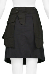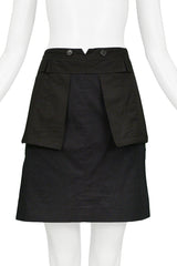 Resurrection Vintage is excited to offer a vintage Helmut Lang black cotton inside-out skirt featuring exposed front pocket flaps, a flap waistband with buttons, cargo pockets, and an asymmetrical hem.