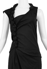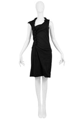 Resurrection Vintage is excited to offer a vintage Helmut Lang black knit jersey dress featuring an asymmetrical neckline and sleeves, knee-length, and several knots that circle around the neckline and down one side of the dress. From the 2005 runway collection.